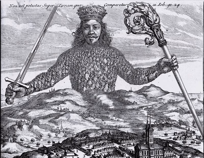 Innym pokrewnym terminem, często używanym do opisania współczesnego amerykańskiego państwa biurokratycznego, jest „Lewiatan”, słowo o biblijnym pochodzeniu, którego zmieniono na tytuł monarchistycznej książki Thomasa Hobbesa z 1651 r., która opowiada się za silnym scentralizowanym rządem. Hobbes argumentuje, że pokój obywatelski i jedność społeczną można najlepiej osiągnąć poprzez ustanowienie wspólnoty w drodze umowy społecznej. Idealną wspólnotą Hobbesa rządzi pojedyncza suwerenna władza odpowiedzialna za ochronę bezpieczeństwa wspólnoty, mająca jednocześnie absolutną władzę zapewniającą wspólną obronę.