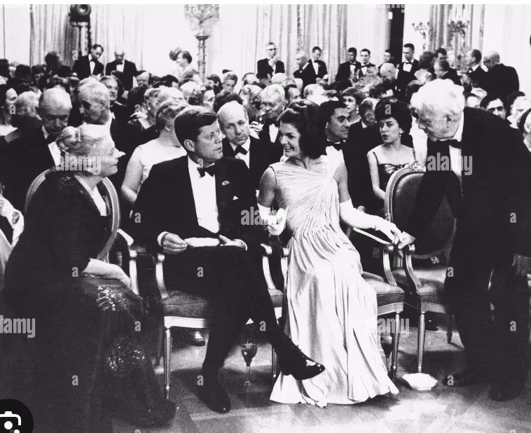 Oto prezydent Kennedy i pani Kennedy witający i popierający ukochanego amerykańskiego poetę Roberta Frosta: