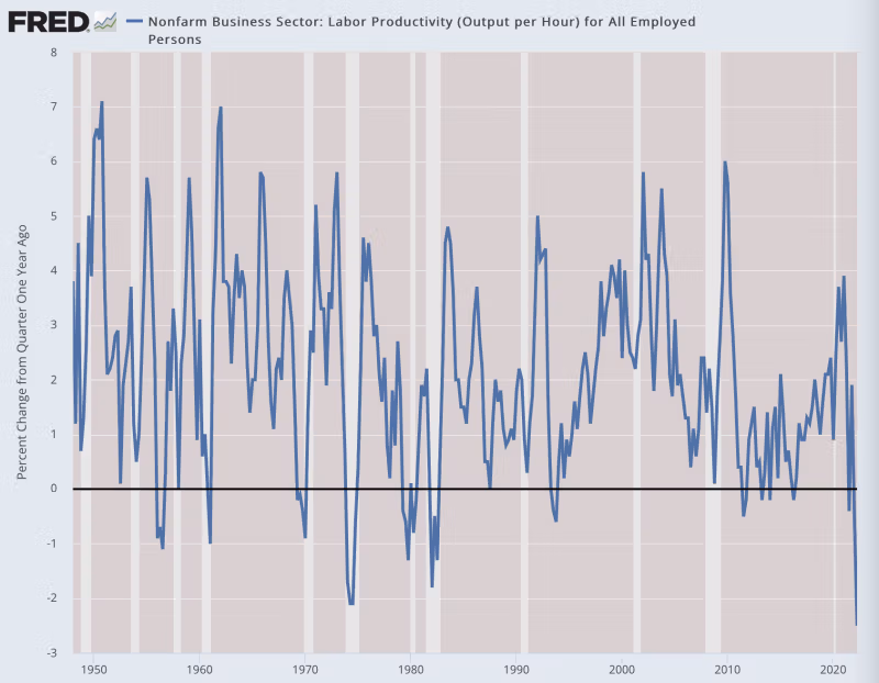 Dzisiejszy raport produktywności za II kwartał… wyniósł -2%, oprócz spadku o -4.7% odnotowanego w I kwartale. Razem stanowią one najgorszy spadek wydajności, jaki kiedykolwiek zgłoszono.