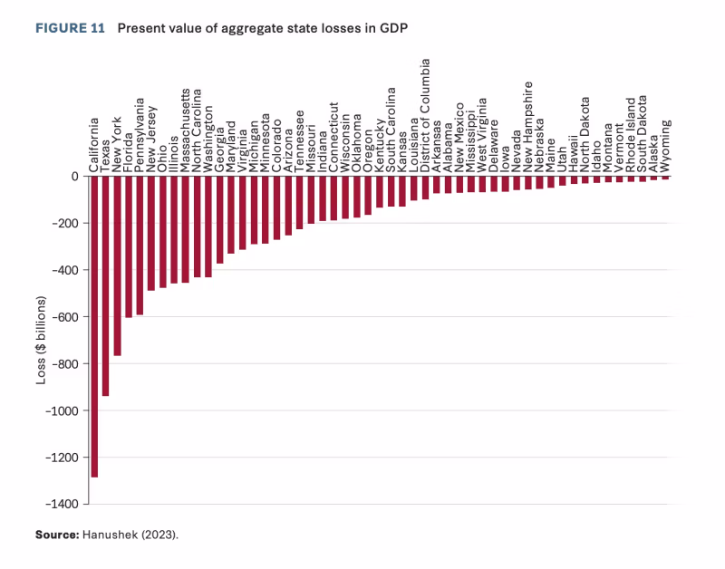 To niewybaczalny, historyczny zestaw decyzji o trwałych konsekwencjach zarówno w miękkich kategoriach kulturowych, jak i trudniejszych w kategoriach ekonomicznych. Strata 31 bilionów dolarów to strata PKB wynikająca wyłącznie z zamykania szkół. Nie uwzględnia to nawet utraty dochodów z działalności gospodarczej, wieloletniego niepowodzenia w zakresie nowych przedsiębiorstw ani utraty PKB przez dorosłych, którzy z rozpaczy lub braku możliwości zrezygnowali z planów zawodowych lub innych zajęć.